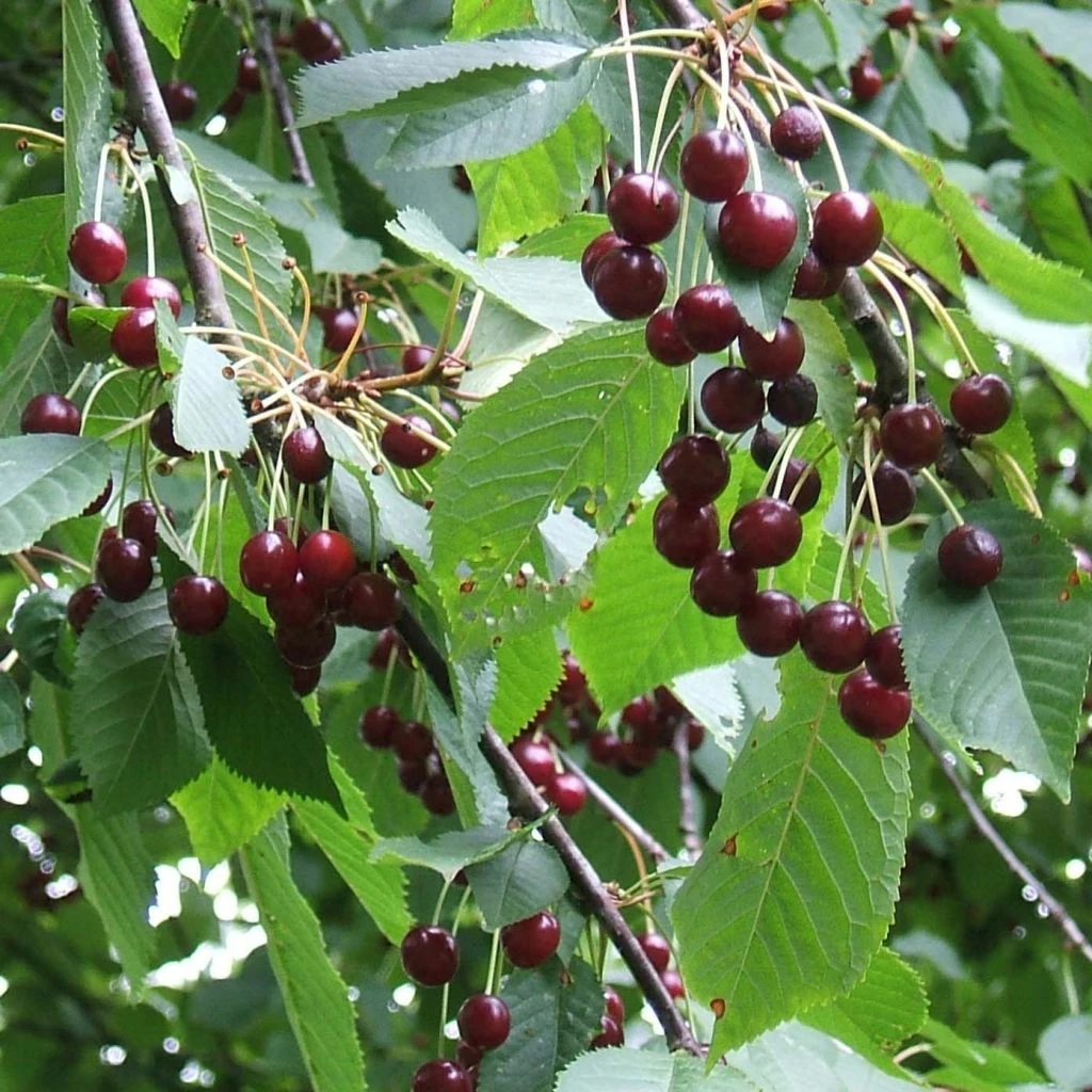 Le cerisier est l’un des arbres fruitiers les plus répandus dans les jardins. On distingue les bigarreaux (Prunus Cerasus) avec les variétés ‘Burlat’, ‘Napoléon‘ ou ‘Coeur de Pigeon’ qui sont les cerises les plus connues et les plus savoureuses et les griottes (Prunus avium), plus acides, idéales pour les confitures, conserves, eau-de-vie. Si certains cerisiers sont autofertiles, d’autres nécessitent impérativement d’avoir un autre cerisier à proximité pour permettre une bonne fructification.