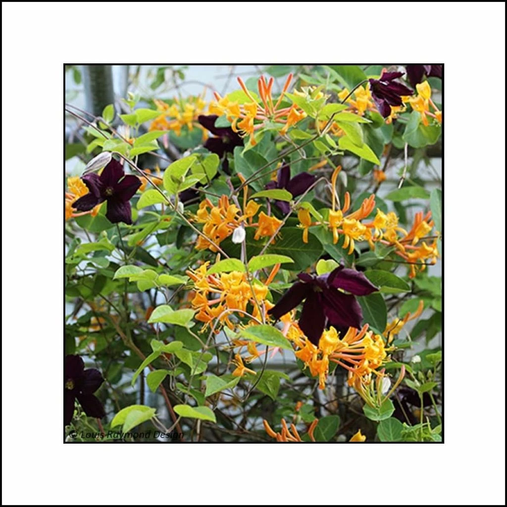 Ce duo est composé d’un plant de Clematis Romantika et d’un plant de Lonicera Mandarin.