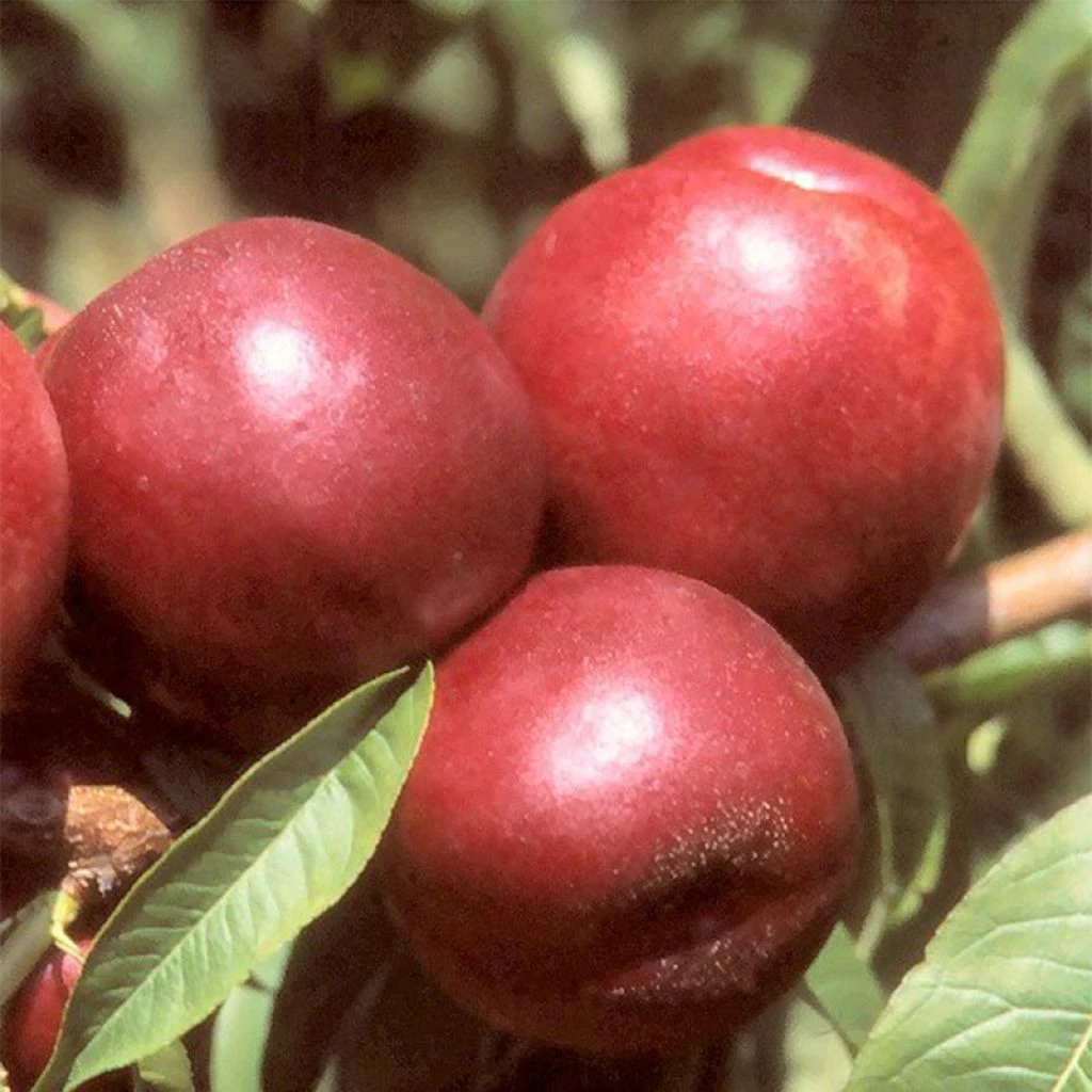 Le Nectarinier Morton est une variété auto fertile, à floraison tardive et rustique. Elle produit des brugnons à chair blanche. Ces fruits sont rouges brillants. Ils sont juteux, sucrés, fondants et charnus. La récolte a lieu à maturité début juillet et s’étendra sur 3 semaines. Les brugnons sont différenciés des nectarines par l’adhérence de la chair au noyau. Le brugnon Morton a un noyau semi-libre.