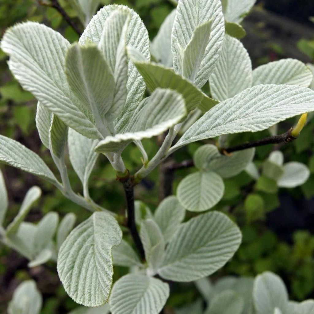 Le Sorbus wardii, également appelé Sorbier du Tibet, est une nouvelle variété encore peu commercialisée et hautement décorative par son large feuillage rond, très duveteux lui donnant une teinte argentée, brillante. Il forme un petit arbre ou grand arbuste arrondi de 7 m de hauteur maximum, parfait pour le décor de petits à moyens jardins. Son grand feuillage elliptique, joliment sillonné de nervures profondes, est entièrement recouvert d’une épaisse couche de duvet blanc qui illumine et étonne les passants, du printemps à l’automne. Cette espèce fleurit en corymbes larges blanc crème de mai à juin qui sont suivis de grosses baies orange vif en octobre-novembre. Rustique jusqu’à – 20ºC, cet arbre aime le plein soleil et support bien les sols secs et pauvres comme son cousin le Sorbus aria. Plantez-le en tous sols bien drainés, pas trop riches, contre une haie ou massif d’arbustes à feuillages foncés pour faire ressortir son feuillage clair.